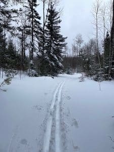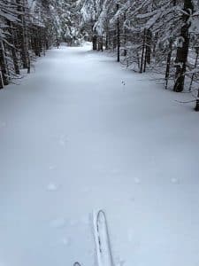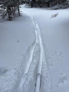 When we got our big snowstorm a couple weeks ago Kim got out to enjoy it. The following is from Kim: Taking advantage of the fresh two plus feet of snow recently, I went for a back country ski through an old forest service road. It was cold enough not to be sticky snow so I was able to ski through the fluff pretty well.